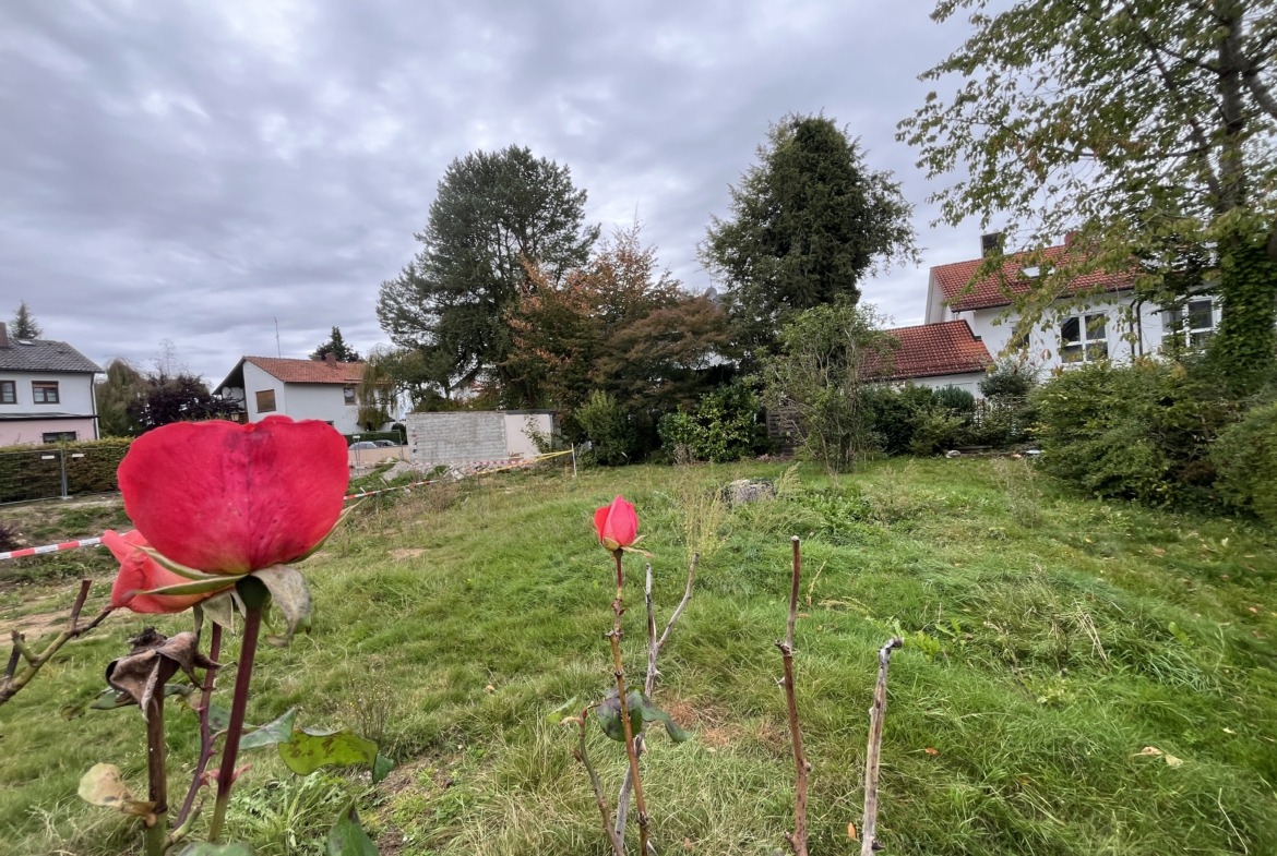 Besonders reizvoll ist die Ausrichtung: Das Haus erstreckt sich von Nordost nach Südwest, der Garten öffnet sich nach Osten und Süden – viel Licht und Sonne sind somit garantiert. Das Grundstück ist erschlossen, für den Neubau fallen jedoch noch Anschluss- bzw. Herstellungsbeiträge an.